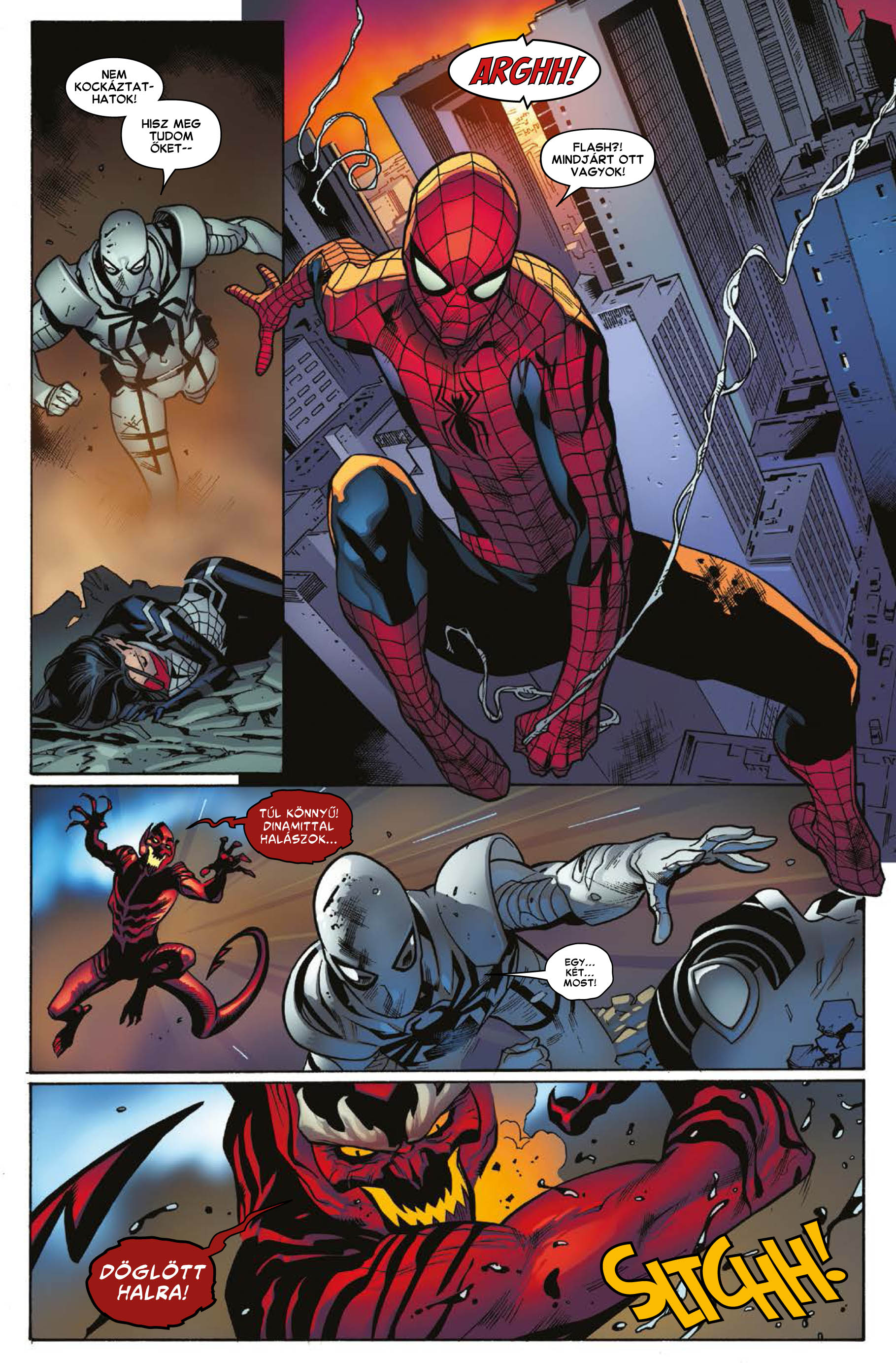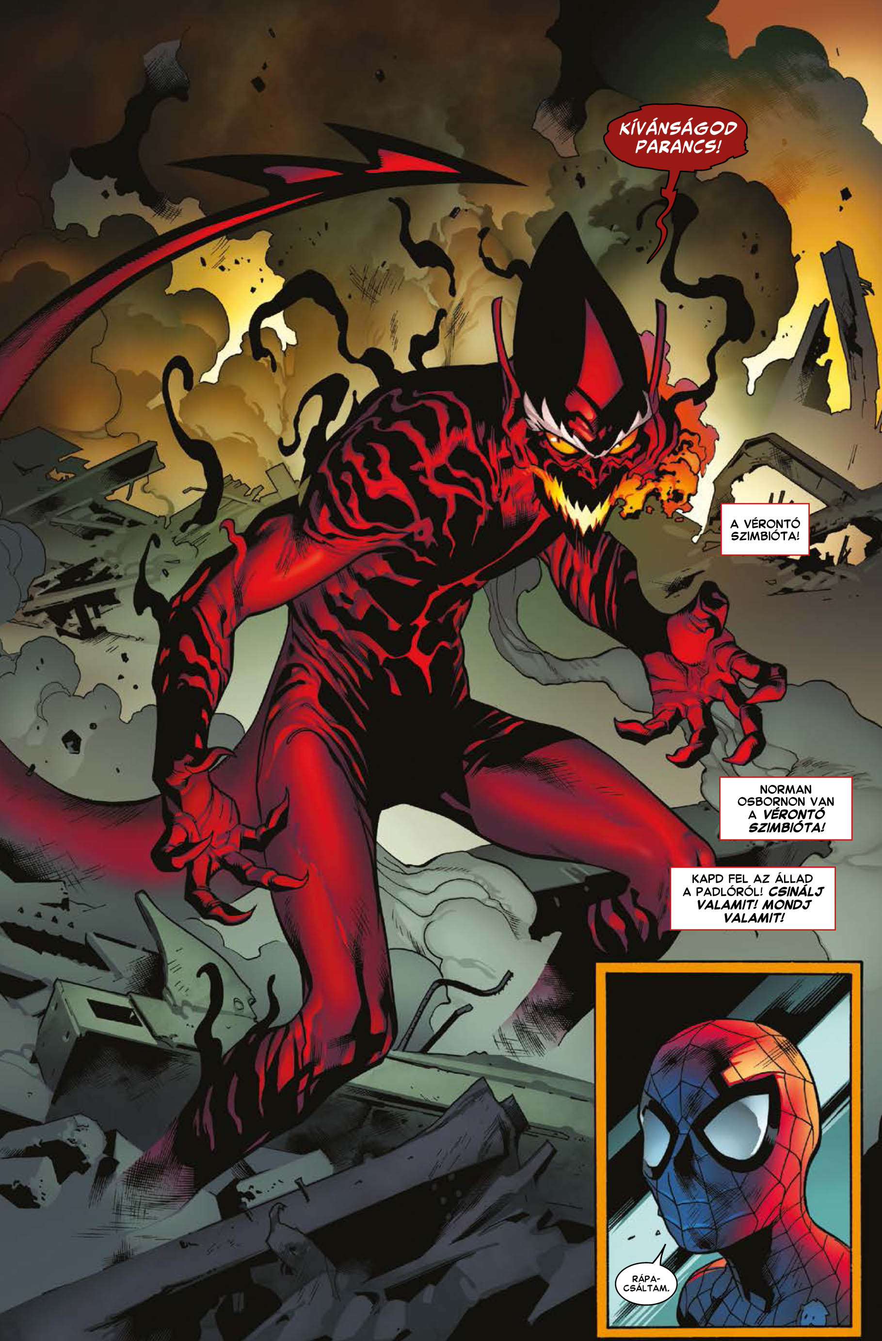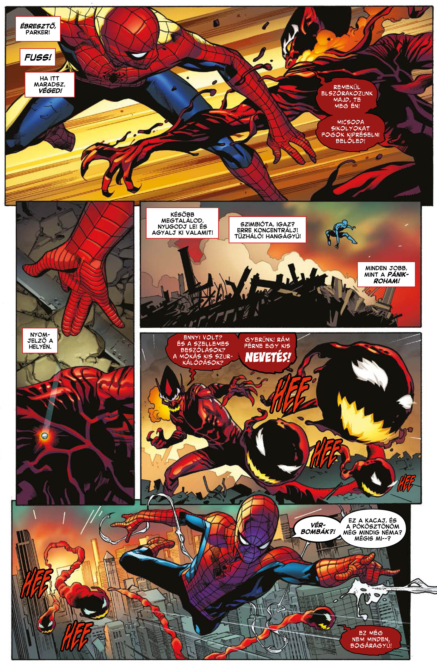 A Nyári Börzére (július 7) jelenik meg a legújabb nagyalakú Pókember HC, vagyis kemény fedeles, védőborítós kötetünk, amelyben egy Pókember-Szellemlovas közös történet kap helyet. A 144 oldalas kötetben 6 rész lesz, a teljes Venom szellemei sztori és az előzménye is. Ilyen lesz a borítója. Ára: 6800 Ft.